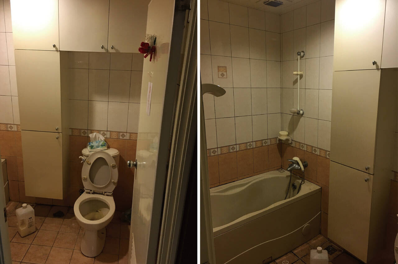 本案其中一個問題在於只有一間廁所,另一處糞管位置已不可考,由於業主一家四口作息皆不相同,沒有太多同時使用浴廁的需求,最後就以翻新原有浴廁為主,然而原則上以家庭來說,還是建議配有至少1.5套衛浴為主。