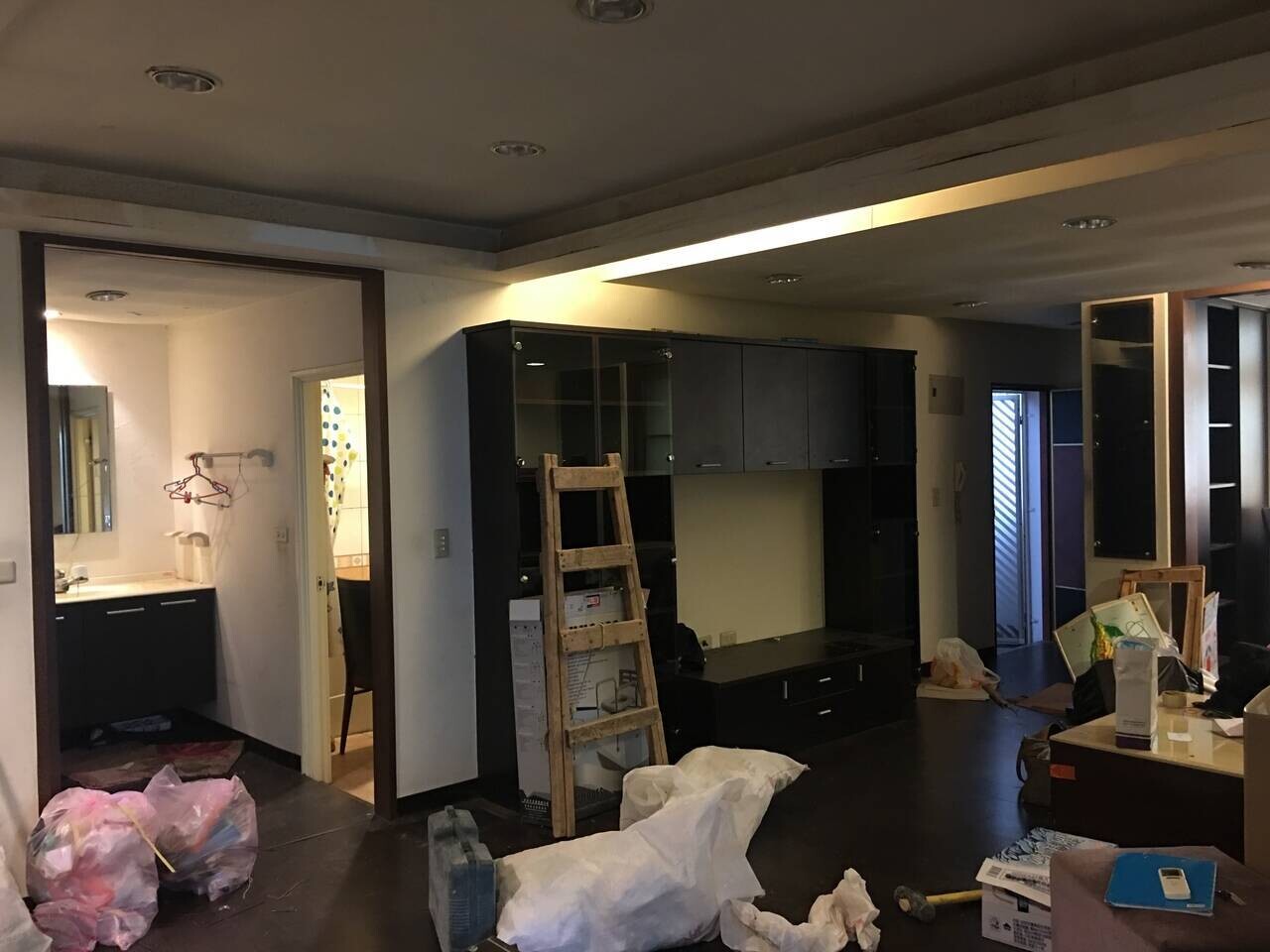 本案較棘手之處在於全屋幾乎都被白蟻佔據,除了有一柱體被蛀空築巢外,牆壁、地面到鋁窗框都有白蟻的道,設計師先將全屋拆除,並持續往排水孔灌水直至所有白蟻被沖出,前後也下了三次白蟻藥,加上整個施作過程都要克服地面八公分的傾斜角度,基礎工程部分是本案比較費力之處。