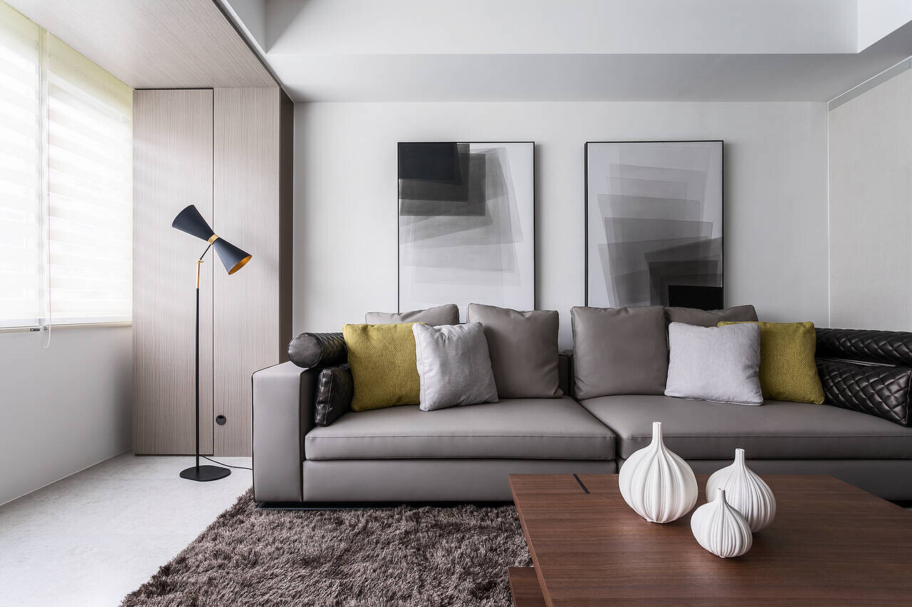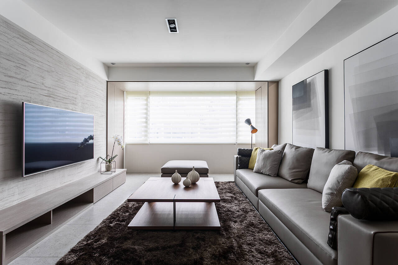 設計師將客廳移至最斜對角,原先另一臥室的位置,是能最直接解決客廳、餐廳與廚房採光問題的方法,一開始業主對於將客廳擺放在最深處也有疑慮,比較無法消化,但由於玄關進門與置鞋處距離能一覽整個公領域僅三步之遙,反而在解放空間的同時亦保有了更多隱私性,最後也就沒有再多風水上的顧慮了。