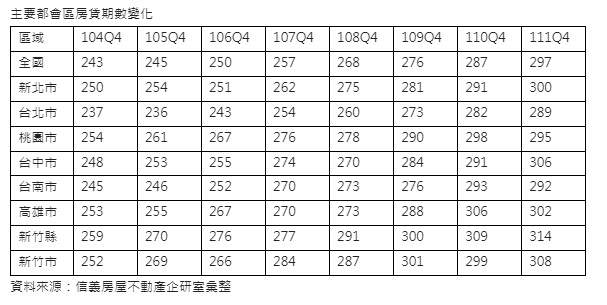 根據內政部不動產資訊平台資料顯示,去年第三季的房貸期數全國為