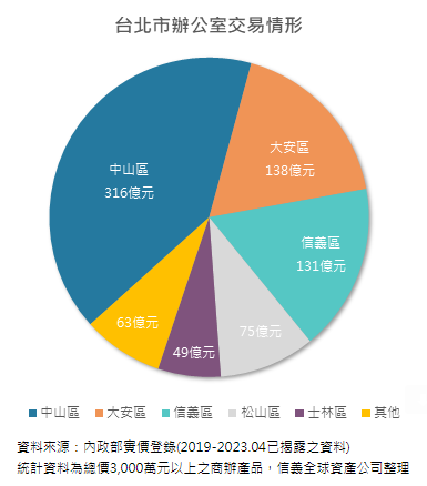 中山區、大安區為北市兩大辦公室交易熱區。林三智總經理分析,