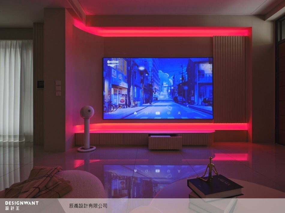 由辰禹設計的劉家余總監操刀的「優雅新古典.混搭輕時尚」一案,此屋主是一對年輕夫婦,希望能在室內設計空間中有舒適、溫暖的住家生活環境,但偶爾又能有夜店歡唱的狂歡氛圍,於是設計團隊在起居空間的動線上,完全以溫馨圓潤的新古典風格為主體。進而滿足屋主對生活上的需求,同時也藉由燈光變化,和影音設備的創新,卻又可以同時擁有夜店絢麗風格,而如此能變換風格的設計也深受屋主喜愛。