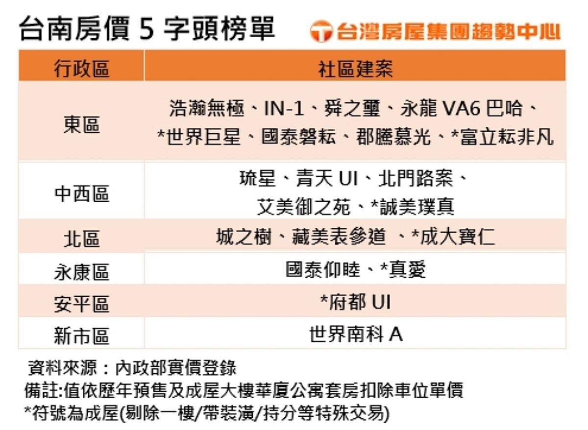 當區域房價形成多蛋黃狀態時,自然形成相互拉抬比價效應,而最近就有房仲業者盤點台南5字頭新案,包括東區、中西區、北區等台南行政區,雖然說5字頭還非普遍行情,但也看得出房價緩漲的趨勢。