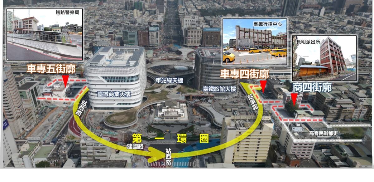 未來也將集中1,200坪的警政設施至車專四,釋出更多空間予車專五與商四開發使用。台鐵則表示,現有商辦大樓將改為百貨及辦公用途,地面與地下層將規劃為餐飲與伴手禮零售空間,採租賃方式招商,旅館部分則以促參方式辦理。待車專四、五開發完成後,台鐵將分回商業空間規劃商場、娛樂與餐飲設施,並增設百席以上停車位,以提升整體商業量能並滿足旅客與市民需求。