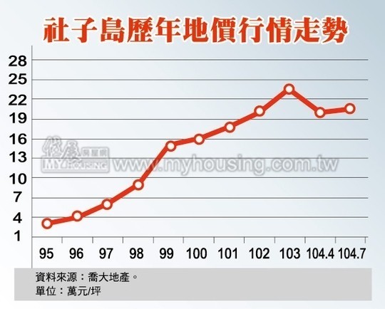 但因受到房市景氣下滑衝擊,社子島土地平均成交價格卻已從去年高點滑落,唯這屬於正常現象,若開發案真的啟動,價格就容易回升。