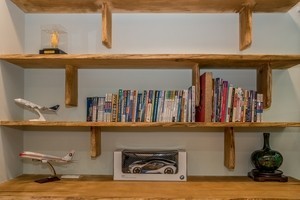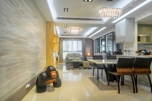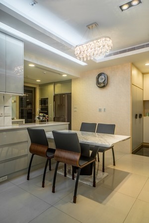 綜觀本案住宅空間,除了廚房和餐廳以特殊紋路的大理石界定場域外,整體設計都能窺見設計團隊在詮釋木作的創意用心。從客餐廳和書房開放式的格局,以及溫潤柔和的木紋,再輔以拋光大理石面和水晶吊燈的點綴,讓屋主能在35坪的室內空間,便享盡華美低調的家居生活。