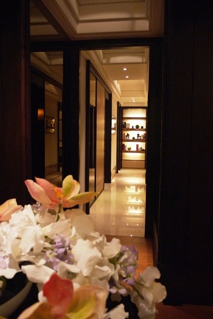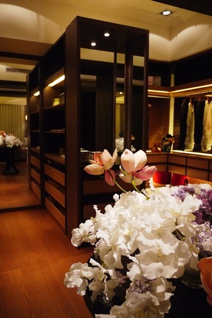 ↑↑↑從這張照片就可以看出主臥中各區塊大致的相關位置。剛剛前兩張圖介紹的男、女主人更衣室,就在照片右側那大盆花的前方;而左側的走道是通往主臥衛浴。