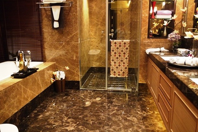 ↑↑↑不僅有大浴缸的空間,還可以做一間乾濕分離的淋浴間。洗手台檯面又很大!(這不是五星級,不然是?)