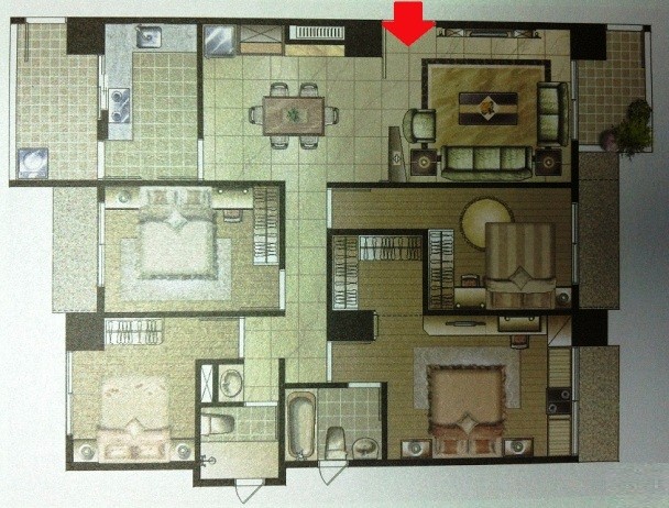 ↑↑↑這間房的格局是四房兩廳兩衛,格局算是方正,採光也很好。因為每個房間都有落地窗,所以感覺空氣也挺流通的。
