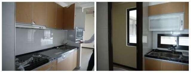 ↑↑↑大未來D棟某戶。大坪數規劃雙廚房,小編猜測這用意是外面的廚房(左圖)是女主人展示賢慧用的~但是裡面的廚房(右圖),才是真正在使用的,因為它旁邊就是瑪麗亞房、儲藏空間&後陽台。 XDDDD