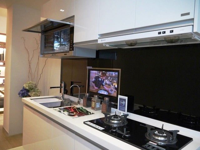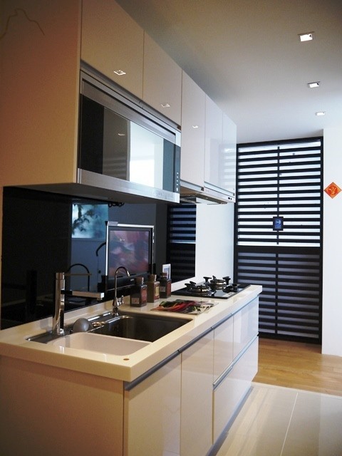 ↑↑↑這廚具好美,三機是小花牌的,但是牆上的電視是沒有贈送的喔!(媽媽說:廚房這麼小只適合不常煮飯的!)