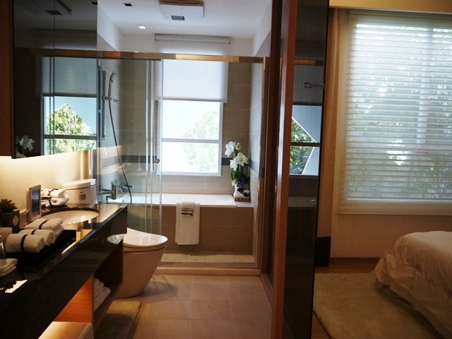 ↑↑↑這樣品屋在主臥與衛浴間只做了輕隔間,讓空間看起來更大。