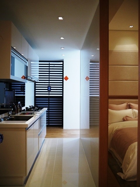 ↑↑↑若是三房的格局,廚房旁邊就會有間客房,若是兩房格局就不會有這間囉!