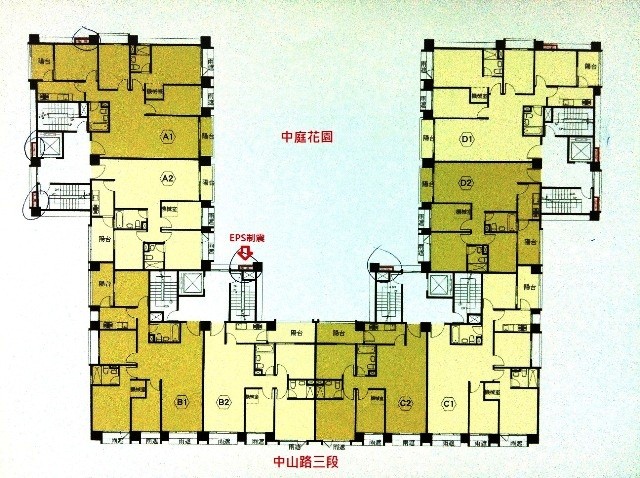 ↑↑↑看基地平面圖就會比較了解這建案的輪廓,四大棟皆為三房、四房雙併