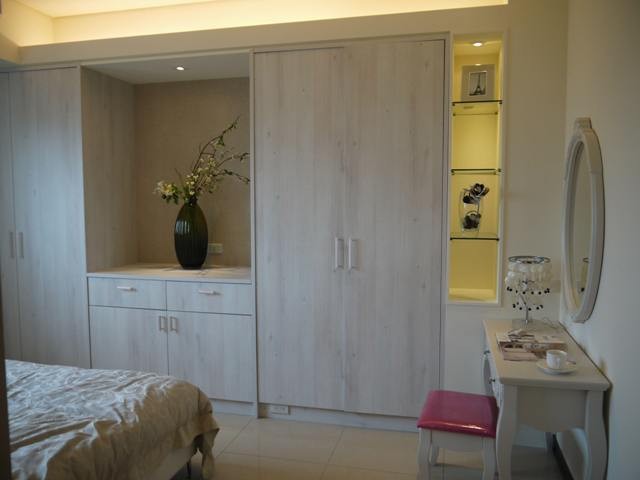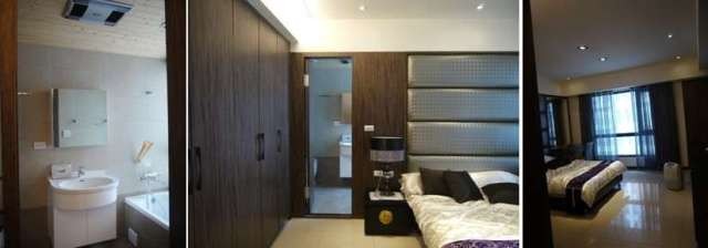 ↑↑↑左圖:主臥廁所。中圖:主臥門口左邊可做整排衣櫥。右圖:主臥擺下雙人床後,前面還有很舒適的走道空間