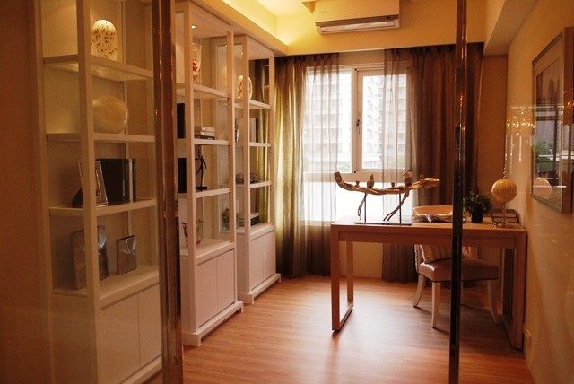 ↑↑↑通往房間的走道,照片中右手邊就是半開放式的書房。用落地的輕玻璃做輕隔間設計,會讓整個空間更有放大的感覺,也會讓室內採光更好!