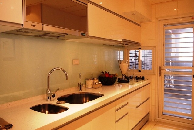 ↑↑↑廚房空間挺大的,容納得下三口爐及兩水槽。處理食物的台面也夠大,的確符合大家庭的需求。