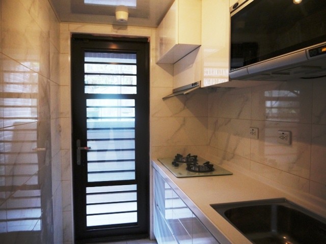 ↑↑↑建商附贈的廚具及通往工作陽台的三用門。(三用門:防蚊、防盜、通風)