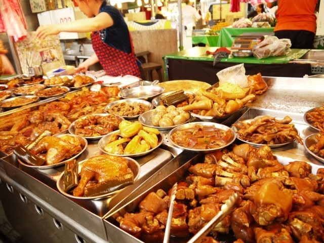位於汐止火車站旁的黃昏市場,看起來很整齊很乾淨。趕緊來逛逛~↑↑↑位於火車鐵軌橋下,空間很大也很乾淨。瞧見那油油發亮的豬腳沒?↑↑↑就是這攤"麗卿"老闆自滷自賣的尚青滷味攤。↑↑↑她的產品也很多種喔!大部分都是秤重賣的,像豬腳就是一兩9.5元。↑↑↑玲瑯滿目的滷味,任君挑選。 最後,小編有買了豬腳回家,據家人試吃結果,不鹹不油不膩,吃完還狂喊要再去買!