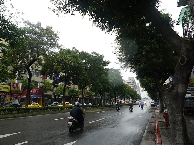 ↑↑↑西園路二段上,有三大排的綠樹,如果有藍天應該很美~~