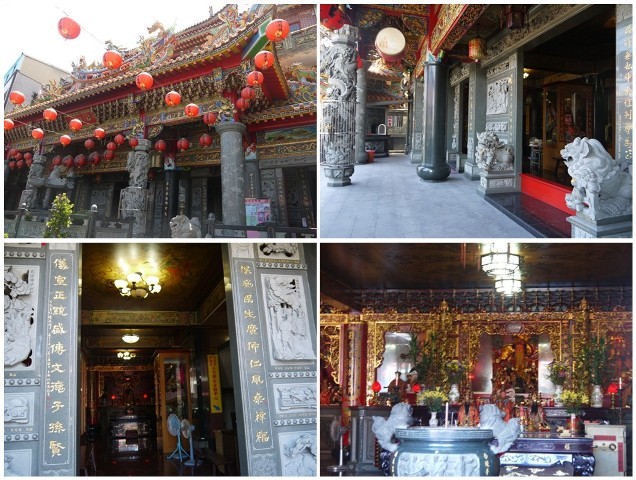 離開親民公園騎在大觀路二段上,一下子就會看到浮洲福德宮(土地公廟)。這間土地公廟非常漂亮,樑柱天花的木作與石雕都很精細及華麗。