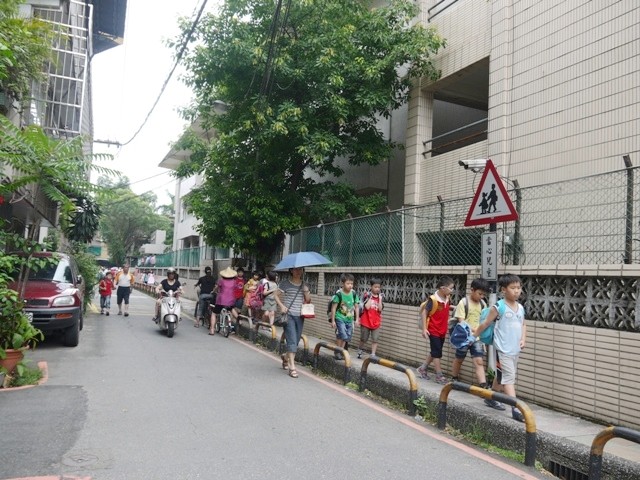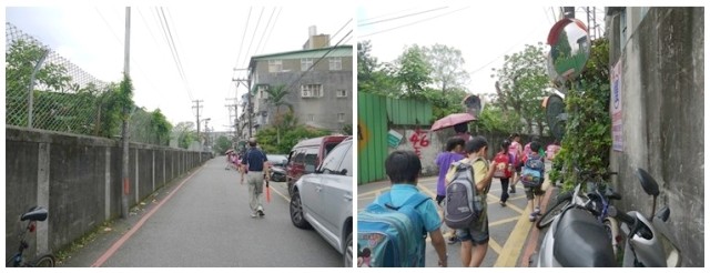 許多導護爸媽協助帶小朋友回家,而且會沿路一直送到安全的巷弄內,但是巷弄有點狹小,以後應規劃拓寬,給孩子一個安全回家的路