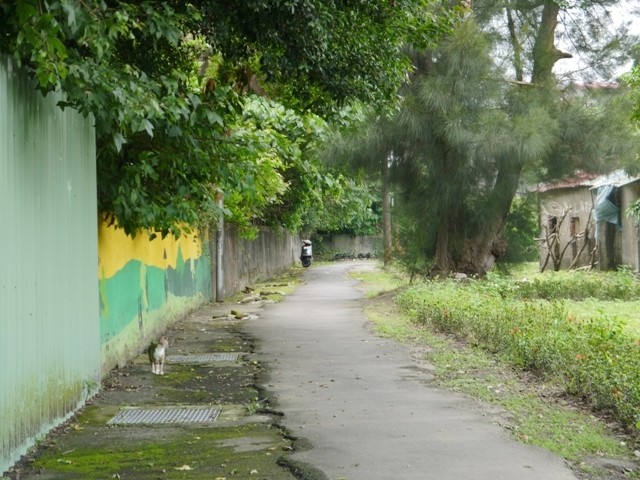 老眷村內的羊腸小徑,一隻虎斑喵靜意的走著……小編很喜歡這裡的感覺
