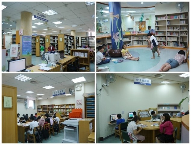 土地公廟的樓上就是浮洲圖書館,有學生在自修區讀書、有小朋友在童書區玩耍、還有視聽區可以上網,環顧圖書館內的民眾,男女老少似乎都可以在這裡被滿足。