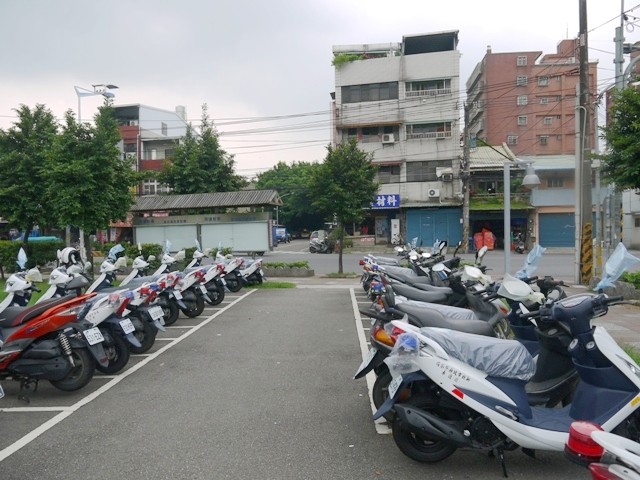 公園機車停車格內有一半是警車,看來這個公園的治安一定很好XD (因為照片外的右前方就是警察局啦~)