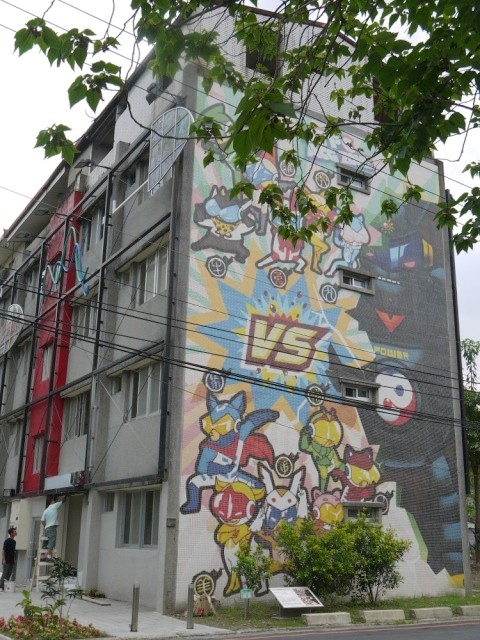 公園內矗立少許眷村老屋,有的還有住人,有的已經荒廢,但是共同點都是必會有富有創意巧思的彩繪。