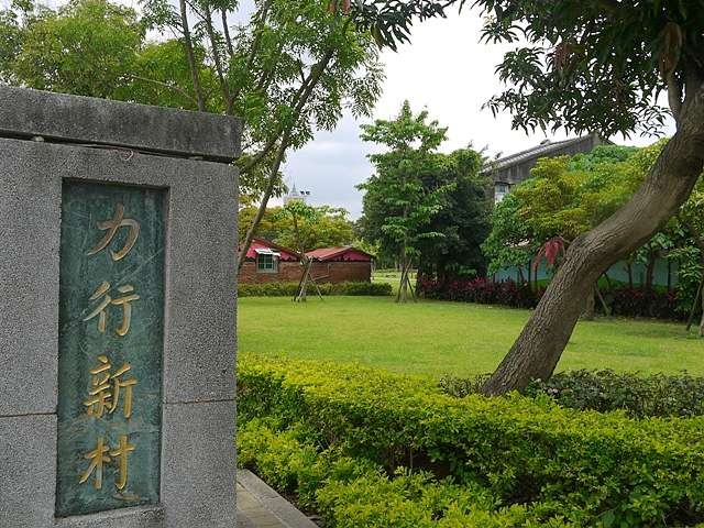 下橋沿著大觀路二段順行,右手邊可以看到力行新村,這裡原是軍方的老舊眷村,因過去水患侵襲,屋舍年久失修,經政府規劃打造成浮洲親民公園,裡面可以看到些許的舊房舍,台藝大學生在圍牆上彩繪,將老屋再造出不同的繽紛生命力。