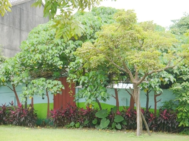 很幽默的創作,牆上的樹幹彩繪與圍牆內的樹蔭高度巧妙結合!