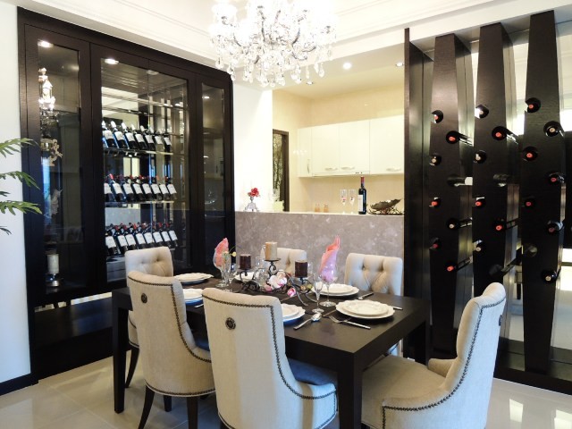 ↑↑↑玄關的後方就是餐廳,利用裝潢用吧台及紅酒架隔開了餐廳與廚房。