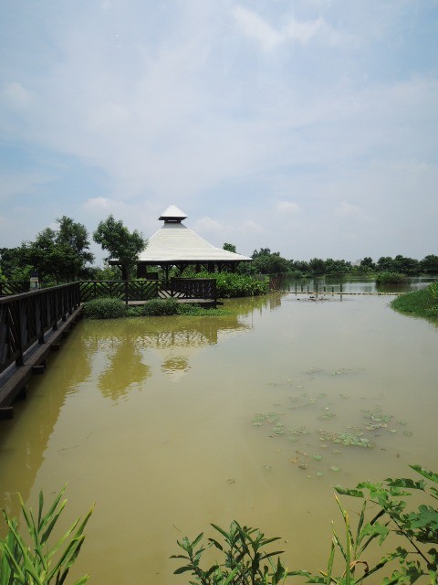 ↑↑↑從餐廳望出去的公園景像,這...埤塘的水是不是一定得這麼的黃呢?