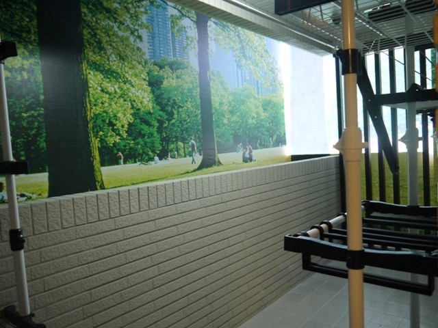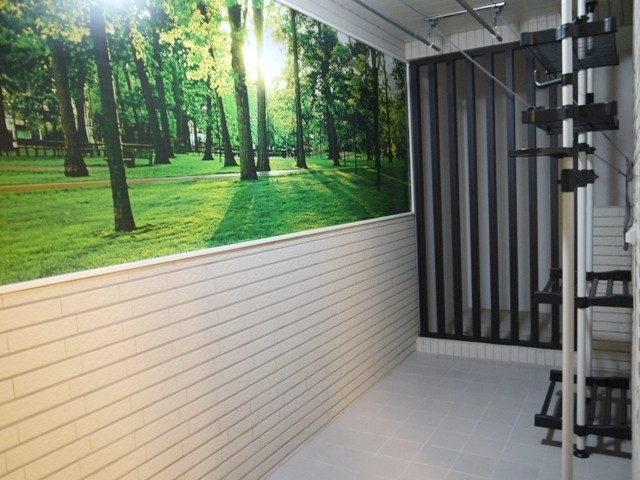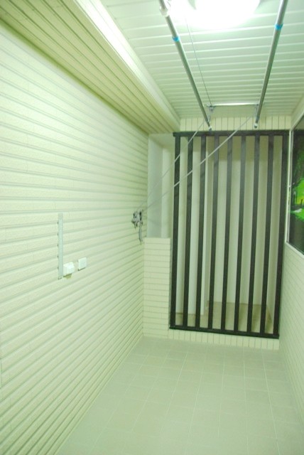 後陽台也是非常非常大,可以放很多台腳踏車…… (提醒大家,照片上看到大樹草地的輸出大圖,你以為陽台有很漂亮的景觀,錯!!其實長型陽台的長邊,都是面對面的陽台,現場只是形塑出一個氛圍)