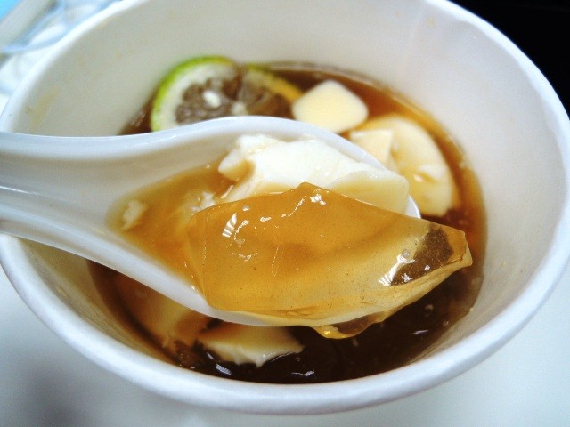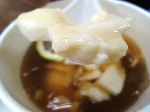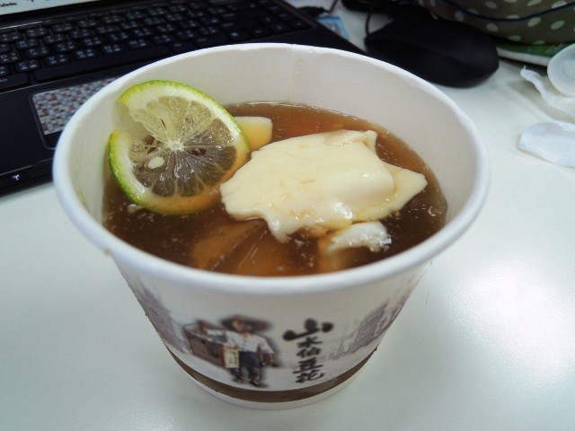 ↑↑↑檸檬愛玉豆花除了加檸檬汁也會加片新鮮檸檬。