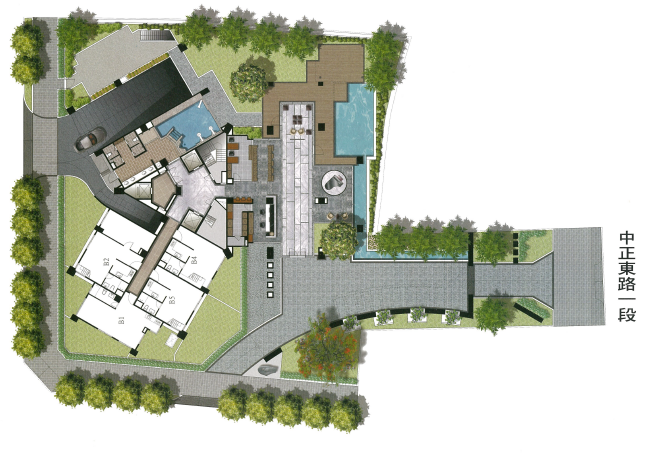 雖然麗景位於車水馬龍的中正東路上,但因為他有退縮好一段距離,而且前排還有一整排的透天厝,因此相對的社區環境也較為寧靜。