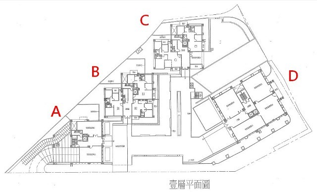 以下為社區1F的平面規劃圖,進出車道規劃在A棟