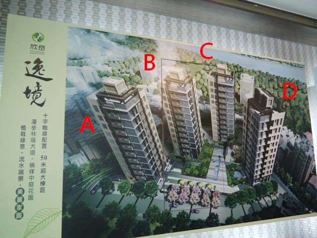 欣岳逸境基地面積1,384坪,共有4棟樓高11F/2B的建築,可售戶數134戶,坡平車位135個,因為低總價的關係,28坪的2房已完銷,現在只剩40坪的3房,與47坪的4房格局可以購買,目前開價30~34萬/坪,公設比30%,未來管理費50元/坪。