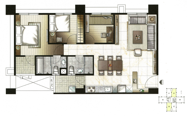 A棟的格局規劃室主臥的窗戶可以看到新市國小,主臥浴室也有對外窗。這很適合喜歡在睡前看看外面景色、浪漫個性的人居住。雖然現在外頭還沒有太多的街景,但相信在不久的將來,這裡會有不同凡響的景色。