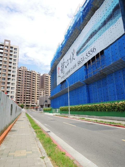 ↑↑↑圖中左側白色鐵皮圍籬就是新市國小,靜江悅與學校的距離僅有一條小巷的寬度。