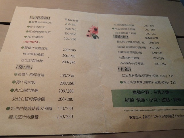 麻花的餐點可以單點,也可以選擇套餐,套餐除了主餐之外,還有沙拉、湯、飲料與甜點。