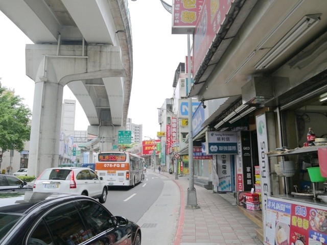 ↑↑↑康寧路三段上車流量非常大,不過有規劃人行道,走路很舒適,沿途非常多各式各樣的店家,道路上方就是捷運