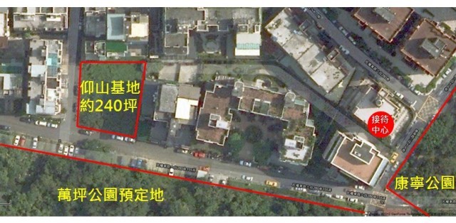 仰山在1F四周的規劃如下圖,將社區庭園造景規劃在後方,因前方已有萬坪公園樹海,後面則規劃社區獨享的庭院,增加與鄰棟的距離。