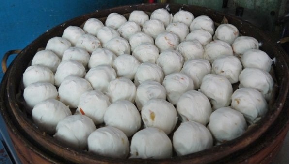 生的肉圓一顆顆躺在蒸籠裡,看得出來這是純手工製作,非工廠機器壓製。奇怪,名叫黑肉圓,怎肉圓白嫩嫩,到底黑在哪?原來是因為這裡的豬肉是使用黑豬肉!黑豬肉一般比白豬肉貴、肉質紮實、口感細嫩、味道甘甜,讓這肉圓雖然是用蒸的方式烹調,也能非常夠味~