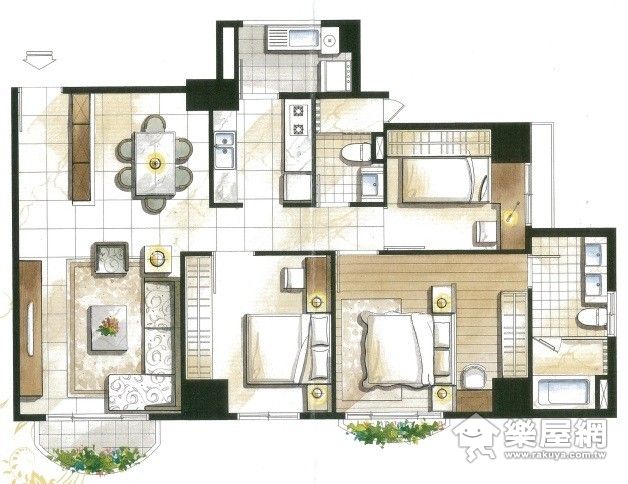 ↑↑↑非外露樑柱的建物,室內空間就會出現比較多的稜角,但可利用家具或裝潢加以修飾。