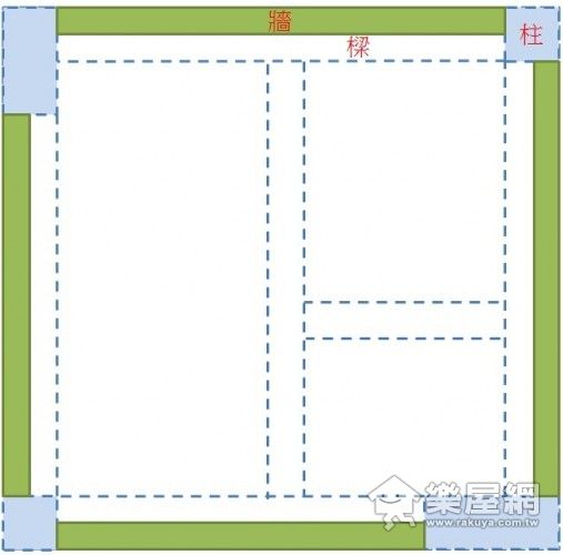 在一般興建房子的過程中,樑柱位置的決定是優先於牆的,因此樑柱是否外露就跟牆是建造較靠近樑柱的內側或外側有關了,現在我們就用圖來說明會更加清楚。