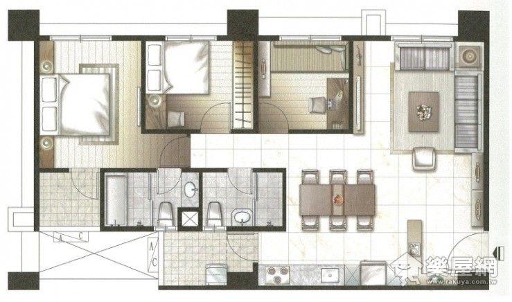 ↑↑↑因為樑柱外露,因此室內空間完整,運用方式較有彈性。