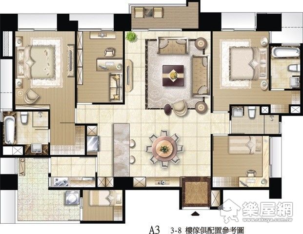 現在就小編就帶大家先看一下建商提供的全區域平面圖及家配圖,從平面圖中就可以發現遠雄奧斯卡是將樑柱外露,使得室內空間較為完整,比較不會出現畸零地。
