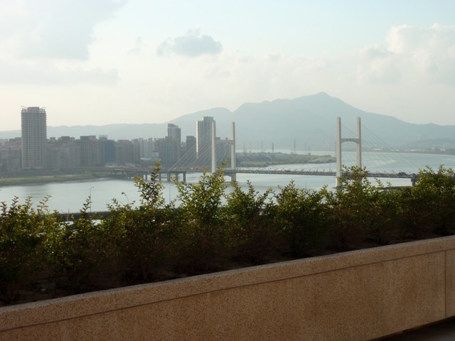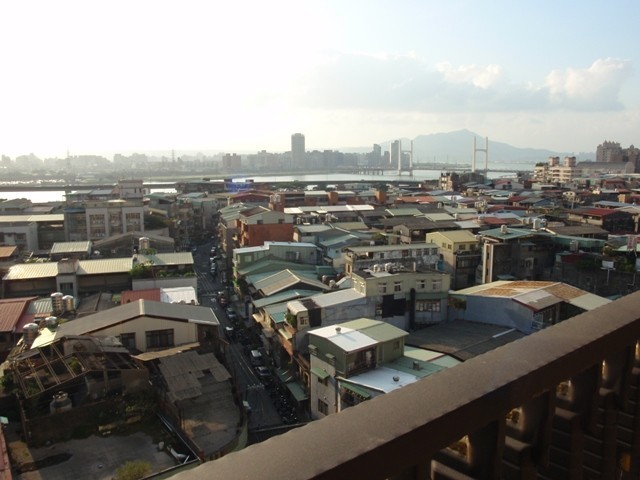 剛忘了一提,來~~~,走到客廳旁落地窗門外就能看見淡水河景。